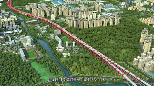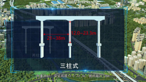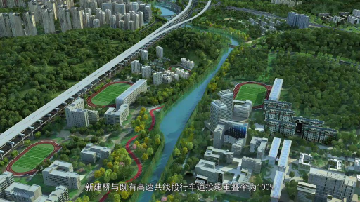 动画精准还原了 “空中转体 + 不落地施工” 的核心工艺。从单旋臂过孔的巧妙走位,到钢盖梁空中 90 度转体的精准对接;从墩梁连接自适应系统的智能调节,到移动兜底式吊篮的安全作业,每一个关键步骤都通过三维动画清晰展示。尤其对首创的 “提梁站 + 桥面运梁 + 空中转体” 施工工法的动态演示,直观呈现了如何将施工对既有高速的影响减少 50%,创造 2.3 亿元运营减损效益。